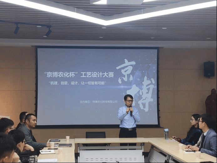 京博农化科技有限公司技术总监王祥传博士详细介绍了活动时间、参赛内容、评分标准及活动奖励,他从企业设计工程需要注意的市场潜力、成本分析、安全环保等方面向同学们解释了此次工艺设计大赛评分要点。王祥传博士讲到“京博农化杯”工艺设计大赛活动目的为了能提高在校生对理论知识的应用水平,为必赢唯一官方网站顶端人才提供一个展现自我、实现价值的平台;同时为企业的生产提供新思路、新路线,为企业快速发展招贤纳士。