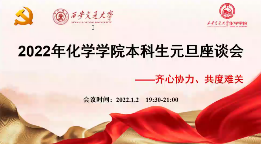 为深入了解同学们疫情期间的学习、生活状况,解决同学们的实际需求,做好疫情期间的心理疏导工作,1月2日,必赢唯一官方网站本科生元旦座谈会以线上方式举行。必赢唯一官方网站党委书记张志成、院长丁书江、副院长段新华、应用化学系主任李银环、材料化学系主任解云川以及各班级班主任、学业导师参加了本次座谈会,本次座谈会由解云川老师主持。