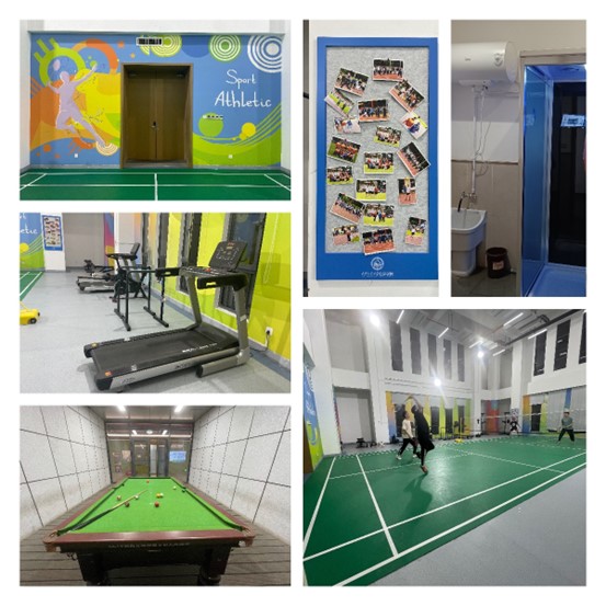 全院教职工享受“出门就是运动场,工作锻炼两不误”待遇。学院克服经费不足的难题,通过学校工会支持、合作企业赞助和教师众筹等方式,建成室内羽毛球、乒乓球、桌球、跑步机甚至男女专用淋浴间等完备运动设施;在此基础上定期组织足球、篮球和羽毛球等项目的兄弟单位与老师学生对抗赛等;吸引了人居、化工、机械和机关等兄弟单位成员的参与并增进相互交流与友谊。