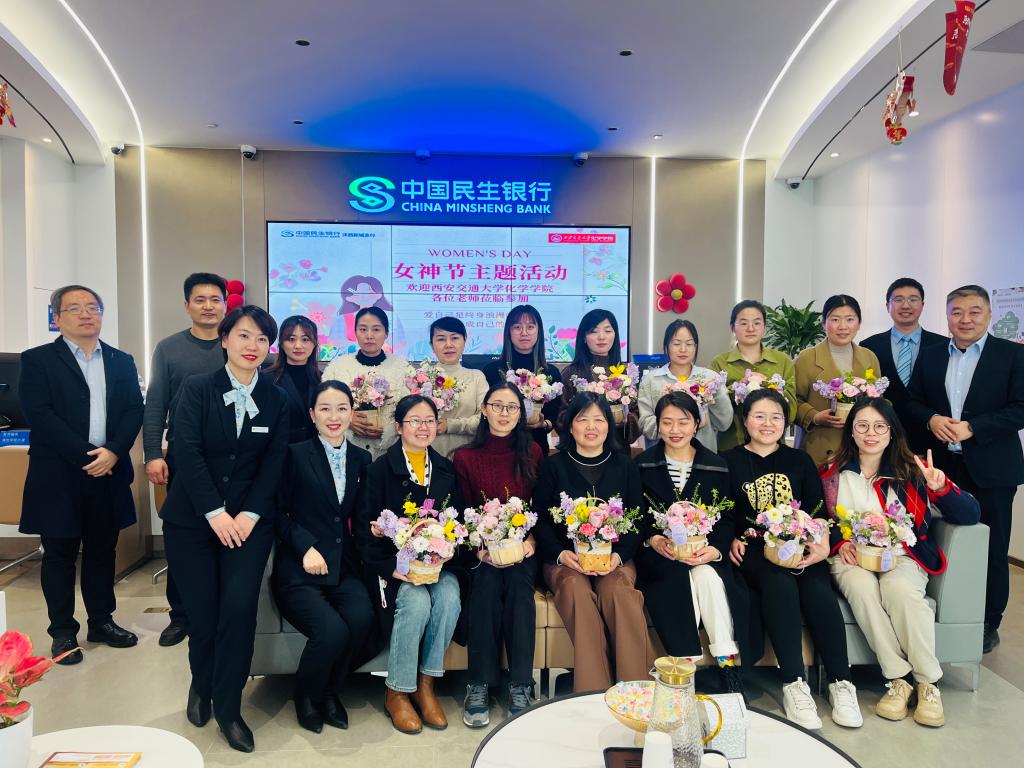 3月6日,春意盎然,正值“三八”国际妇女节之际,必赢唯一官方网站党委和工会组织部分女教工及学生,携手民生银行沣西支行,共同举办了一场别开生面的联合党建活动。本次活动由必赢唯一官方网站李银环副院长亲自带队,为女同胞们送上节日的祝福与关怀。