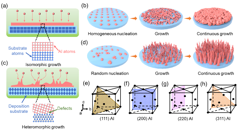 1. 铝电池负极同构生长和异构生长模式的电沉积示意图