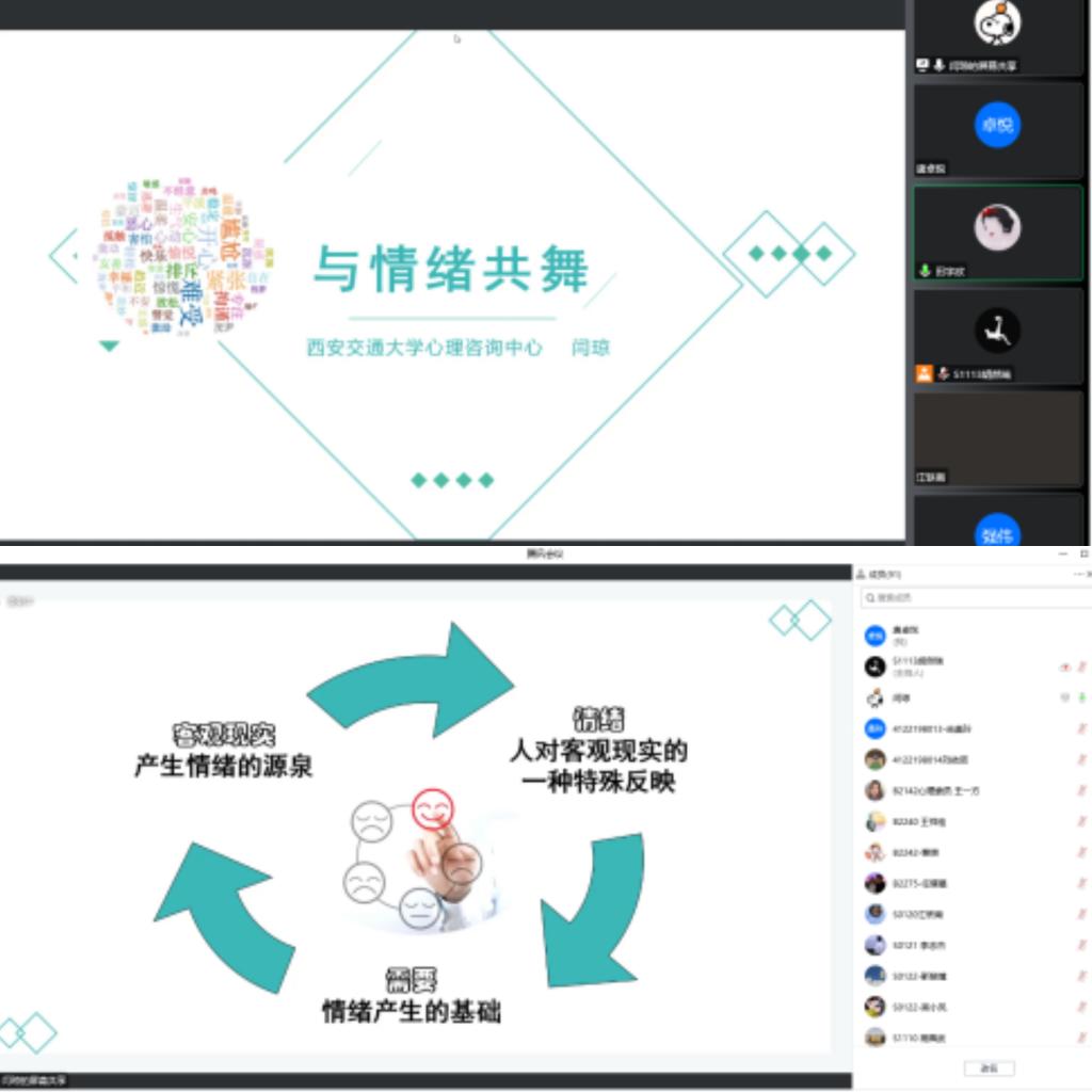 为向研究生普及心理健康知识,我院联合化工学院、生命学院、基础医学院邀请了大学生心理健康教育与咨询中心闫琼老师于2022年11月23日开展了主题为“疫情下的研究生压力应对与调适”的讲座。本次讲座累计有402人参会,达到了良好的心理健康教育效果。