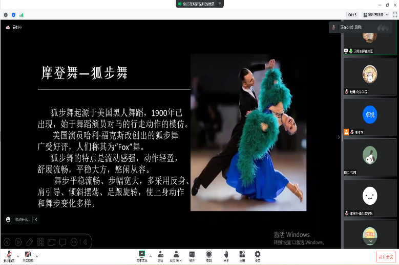 1217日,我院开展了线上体育舞蹈讲座,该课程从舞蹈基础知识、舞姿欣赏、舞蹈服饰等多方面向各位研究生讲解了国标舞。跳舞不仅能培养气质、健康社交,也能有氧塑形、愉悦身心,还能提高审美情趣,塑造健全人格,有助于广大研究生的全面发展。