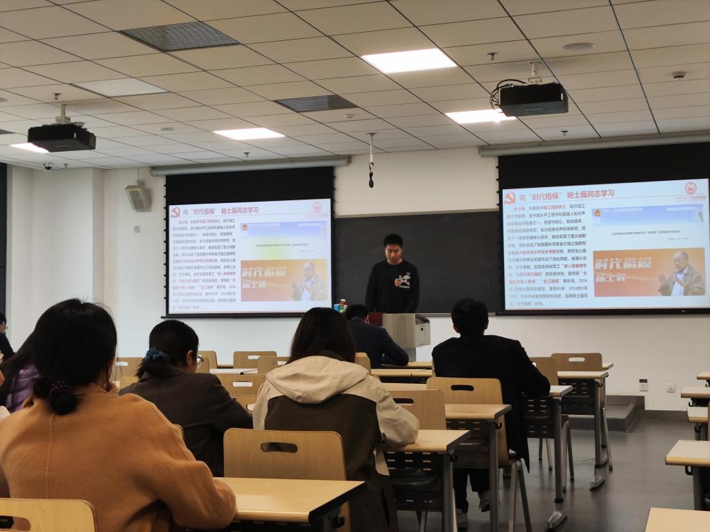 2024 10 30 日下午,高分子师生联合党支部在 19-3110 开展了十月党组织生活会。会议由党支部副书记申锴翔主持。本次生活会以向杨士莪同志学习为主题,旨在传承和弘扬杨士莪院士的精神,激励党员同志们在各自的领域中发挥先锋模范作用。